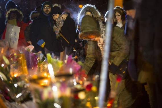 Des milliers de personnes ont participé à la veillée de Québec, en soutien aux familles des défunts et aux québécois et québécoises de confessions musulmanes touchés directement ou indirectement par l’attaque terroriste du 29 janvier 2016, au Centre culturel islamique de Québec | Photo : Olivier Jean (La Presse)