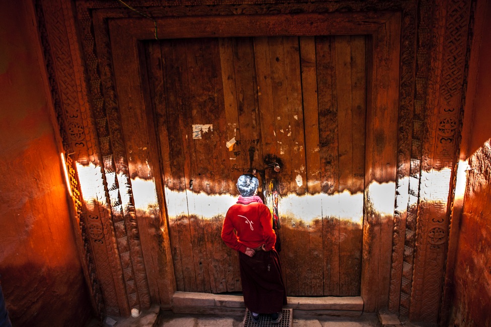 Porte d’entrée du temple de Thubchen. L’intérieur est en restauration, notamment la fresque murale, avec l’aide d’un artiste italien bien apprécié des locaux qui l’appellent affectueusement Luigi | Source Karl-Stéphan Bouthillette