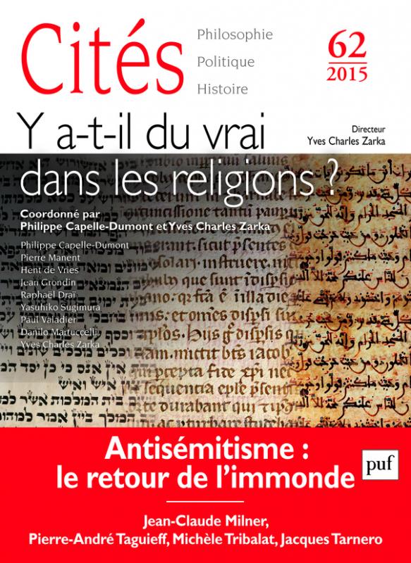 Yves Charles Zarka (dir.) Cités (62) : Y a-t-il du vrai dans les religions ?, Paris, Presses Universitaires de France, 2015, 200 pages.